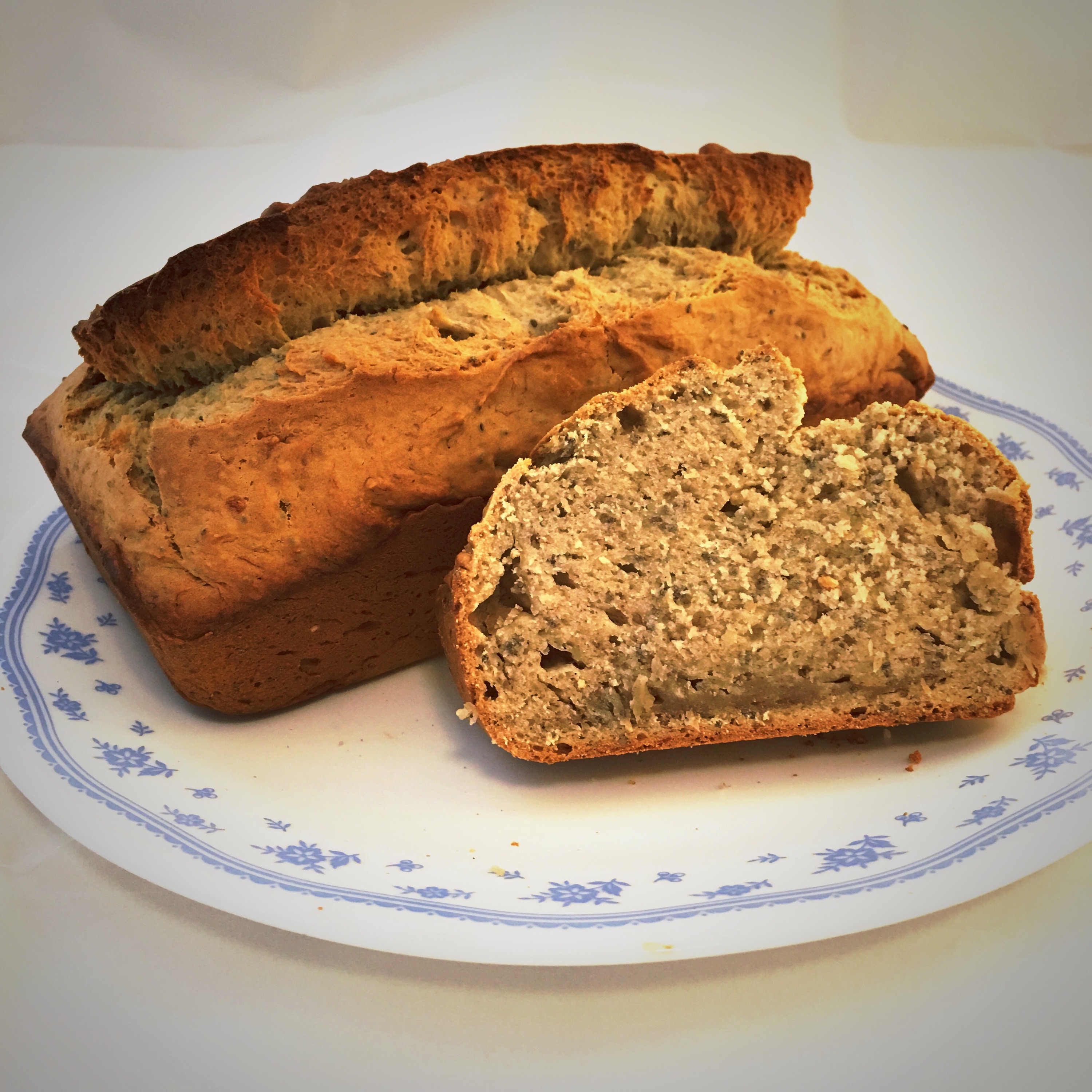 Bake for 50-65 minutes. Check to see if the bread is done by using a cake tester that comes out clean. The edges of the bread should also be pulling away from the sides of the pan. Once bread is done, immediately pull it out of the pan and onto the cooling rack.